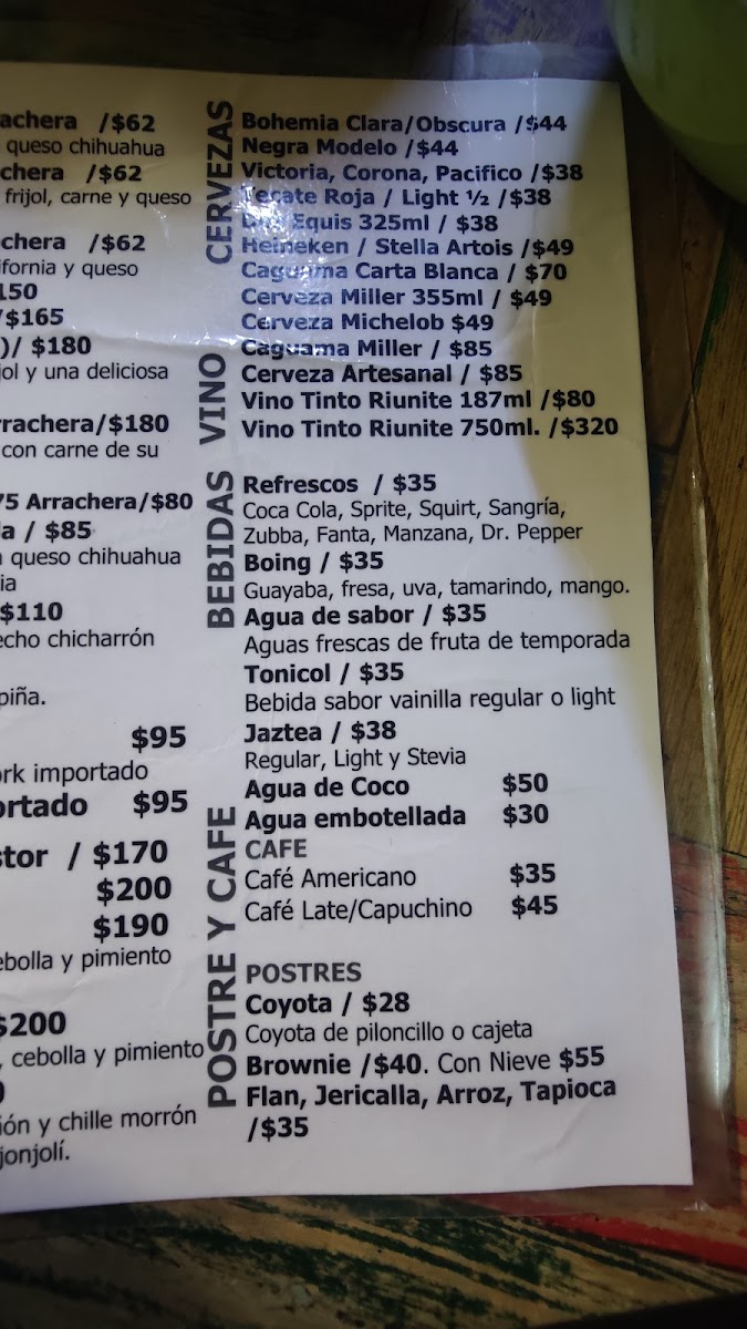 Complement your meal with refreshing beverages like their signature Jaztea, a lovely jasmine tea, priced at MX$50, or classic soft drinks to keep you refreshed.